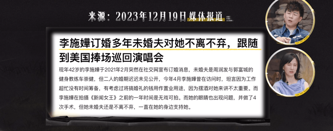 李施嬅在《新闻女王》中饰演“为事业,爱情皆可抛”的“人间清醒女王”张家妍,现实里却因为和未婚夫的感情问题上了《再见爱人5》。